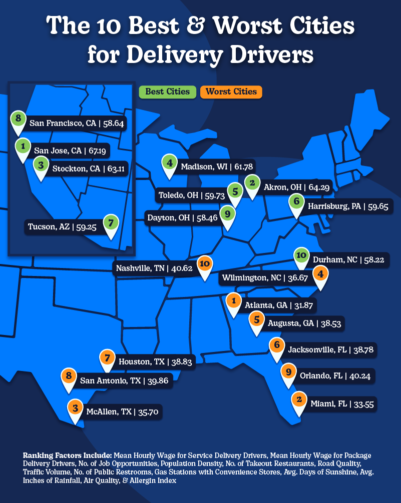 The 10 Best & Worst Cities for Delivery Drivers